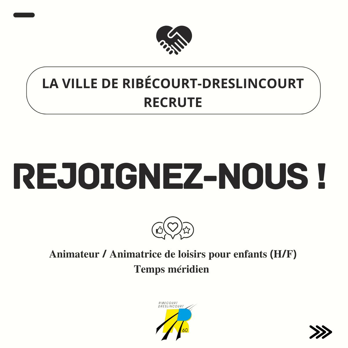 La ville de Ribécourt-Dreslincourt recrute pour son accueil de loisirs périscolaire un(e) animateur(trice) pour l'année scolaire. Sa mission ? Proposer des activités sportives, culturelles, ludiques aux 6-10 ans et les encadrer sur le temps méridien, les lundis, mardis, jeudis et vendredis....