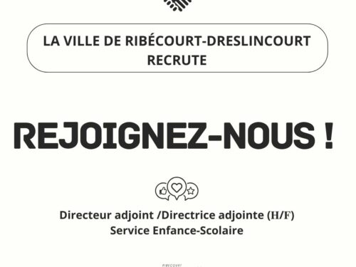 La Ville de Ribécourt-Dreslincourt recrute, pour son service Enfance-Scolaire, un directeur adjoint/une directrice adjointe...